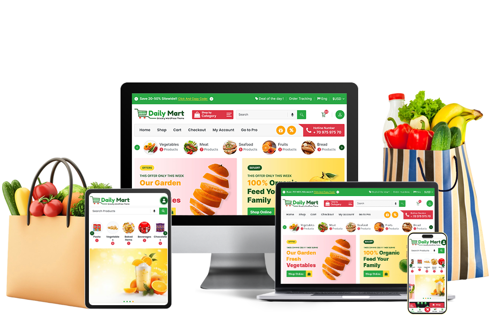 Daily Mart is a fully responsive grocery eCommerce WordPress theme with complete WooCommerce support.